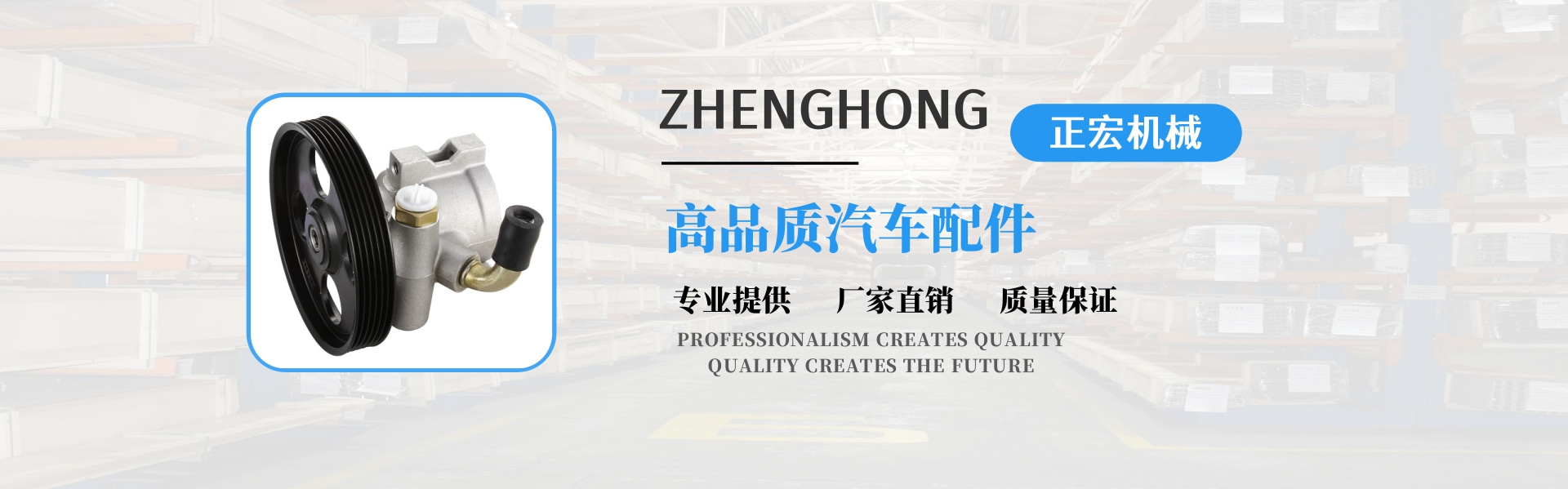正宏機械有限公司成立于2004年,是一家新興的技術(shù)型企業(yè),專業(yè)生產(chǎn)動力轉(zhuǎn)向泵。我們是一家集設(shè)計、生產(chǎn)、貿(mào)易于一體的專業(yè)公司,同時享有進出口權(quán)?! 」咀猿闪⒁詠?,堅持以技術(shù)為導向,以高起點為原點;把產(chǎn)品創(chuàng)新和質(zhì)量管理放在首位。擁有國內(nèi)先進的汽車動力轉(zhuǎn)向泵專業(yè)生產(chǎn)設(shè)備和檢測設(shè)備。憑借經(jīng)驗豐富的技術(shù)團隊,我們已經(jīng)設(shè)計了20多個系列,近數(shù)百個動力轉(zhuǎn)向泵。年產(chǎn)10萬臺。產(chǎn)品深受廣大客戶的信賴和好評,得到了廣大客戶的認可。